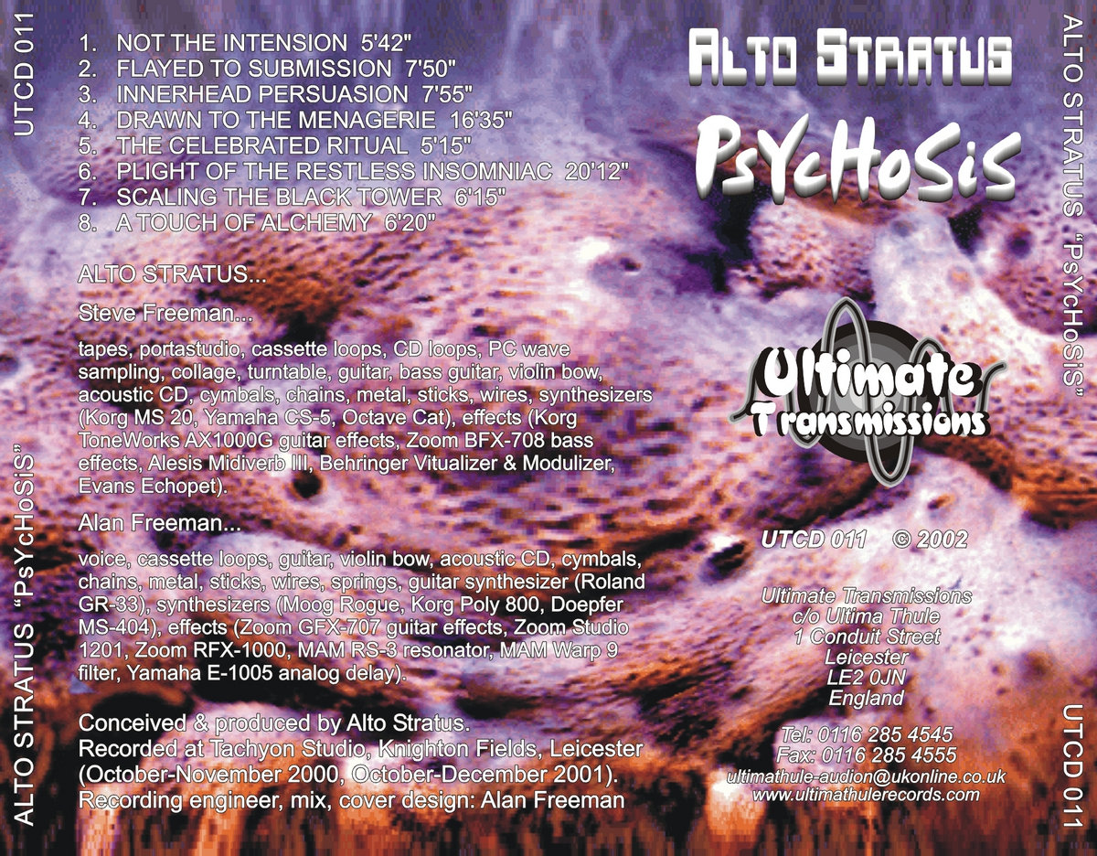 The duo of Alan and Steve Freeman (Ultima Thule), we spent much of our spare time during the 1980's experimenting with electronics, sound collage, etc., recording some 30 odd cassettes as Alto Stratus (and other guises: Vrije, Q.S.O., Electric Junk, etc.), also as soloists, and the trio ZBB. For 30 years we've continued with a 10 further releases since, bands: Endgame, The Newt Hounds, Triax, etc. ... more